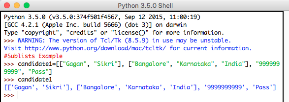 A list in Python can have sublists as elements. These sublists may contain sublists as well. List can be recursively constructed by sublist structures. The following is an example for sublists in Python:
