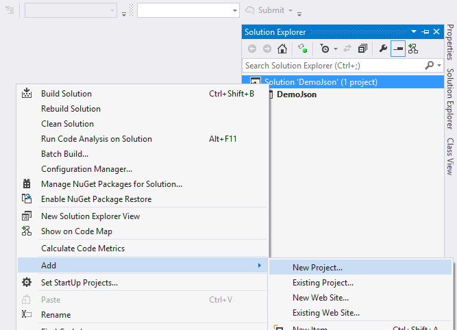 Step 3: After this point from solution explore click on Solution, Add, then New Project as in the following image,