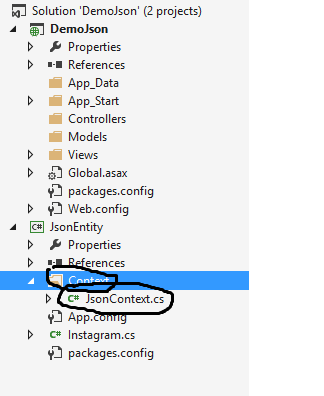 Now build the solution and provide the dll reference of the class in the DemoJson Project. And this completes the entity framework code first approach.