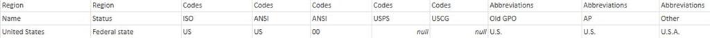 Remove all the other columns except the Region Name and Codes ANSI by selecting both the column and select Remove Columns -> Remove Other Columns from the Home ribbon tab.