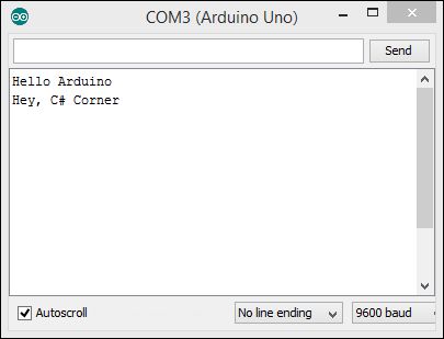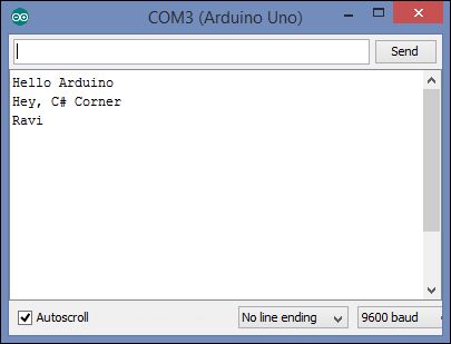 Note: In the preceding code, we have used available() to check whether the Serial Port is ready or not for accepting user input.