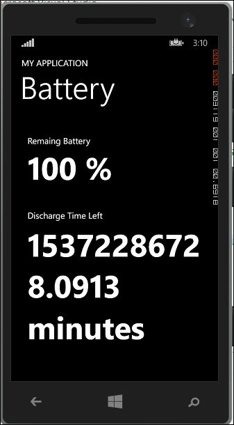 With enhancement, Microsoft has also introduced a new class in the Windows Phone 8 SDK. One of the classes is the Battery class that allows developers to query Battery usage. It belongs to the Windows.Phone.Device.Power namespace.
