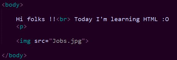 Img is the name of the tag whereas src is the name of the attribute that actually points to the name of the image (Jobs.jpg).