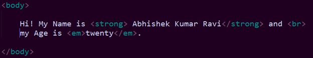 We will now try some text formatting using a few tags. In some books, you saw <b>, <i> and <u> tags are there to make text Bold, Italic and Underline. But now they use <strong> and <em> instead of <b> and <i>.