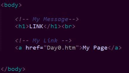 When we click on the "My Page" link then the HTML engine tells the browser to navigate it to the "Day0.htm" webpage (as written in the href attribute in the <a> tag).