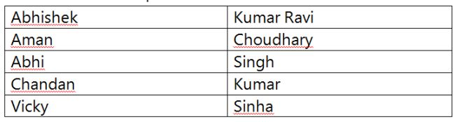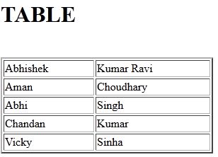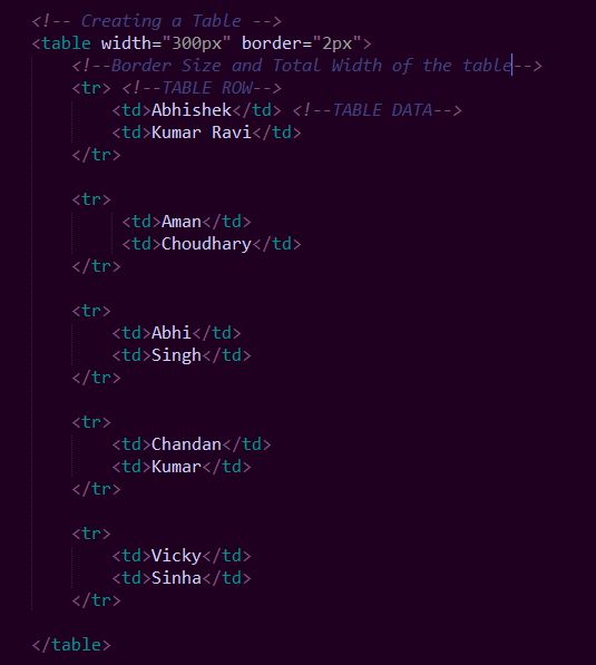 We will create this table using HTML tags as in the following:
