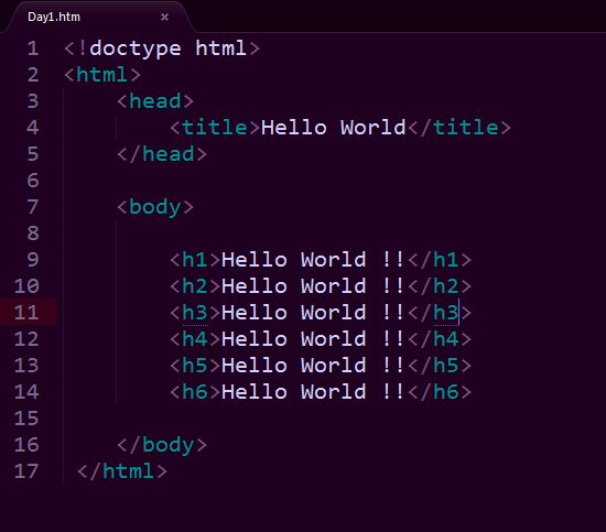 Next, we have a Heading tag as in the following: