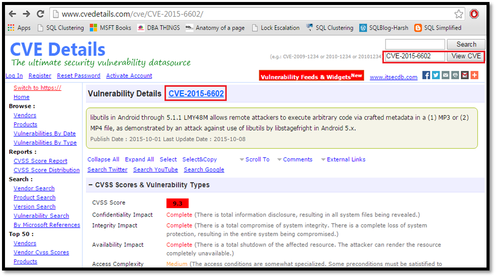 So if someone says what is CVE-2015-6602, then we can easily describe it, that it is a threat ( Common Vulnerability Exposure ) which came in year 2015 having CVE-ID 6602. By putting CVE-2015-6602 on website: www.cvedetails.com you can get more information, resources and links for the particular CVE. I hope that now CVE-YYYY-NNNN is not a new thing for you. You are aware and you can answer if someone asks.