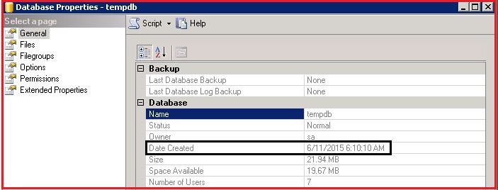We can execute the following query also to check the tempdb creation date: