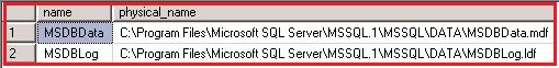 - The same query can be used to see the physical file location of a msdb database:
