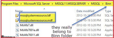 - We can't see the resource database in SQL Server Management Studio but we can see its database file at the OS level by the name mssqlsystemresource.mdf and mssqlsystemresource.ldf in the Binn folder of Program Files.