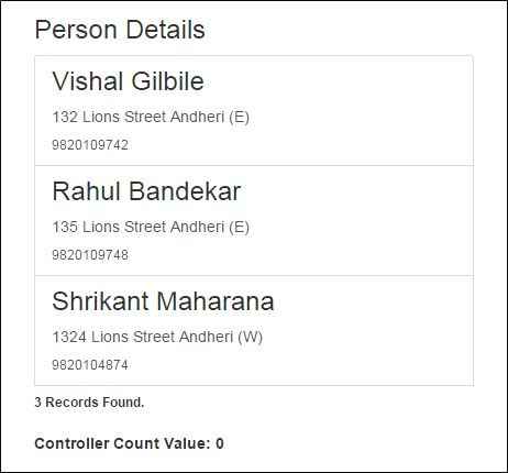 - $scope.Persons.push({ Name: "Shrikant Maharana", Address: "1324 Lions Street Andheri (W)", ContactNo: "9820104874" });