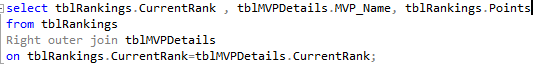 Right outer join: It returns all the rows from right table () and matching rows from left able (Table 1). It returns NULL when there is no match in the left side.