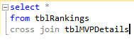 - Cross Join: It returns a result set that is the number of records in left table (Table 1) is multiplied by the number of records in the right table (Table 2).