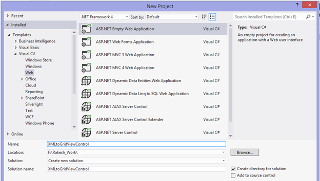 Step 1: Create an ASP.NET empty Web Application.