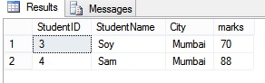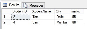 Here, [A-D] indicates that the first letter can be A,B,C or D. And, the first letter should be followed by 'elhi'. In our case, we will get the details of the Student who belongs to Delhi.