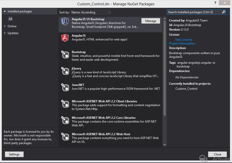 For that, we will first open Visual Studio and create a blank ASP.NET web application. We then need to install some NuGet packages such as AngularJs, Bootstrap and AngularUI.