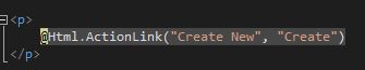 Now the Create New link button will be used to create new records for a customer and save into the database. For doing that, we first add an action to the controller as below: