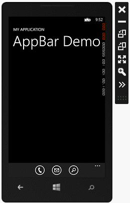 The Application Bar is a row of Icon buttons, menuitems and ellipsis (three dots at the edge of the Application Bar) placed at the bottom of the page. It is recommended to use an Application Bar instead of creating your own menu. We can add up to 4 icon buttons with an optional MenuItems.