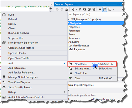 Now, right-click on the project, Add, then click on New Item.