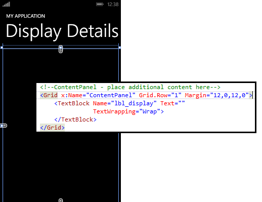 Add a HyperlinkButton control (named it hlb_GoBack). Design the UI of the page as in the following image.