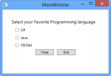 - <TextBlock Text="Select your Favorite Programming language" FontSize="14"></TextBlock>