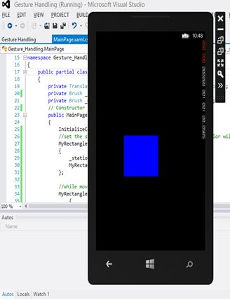 This is a simple example for gensture handelling in Windows 8 Phone. This basic example will provide an idea to implement and use the gesture.