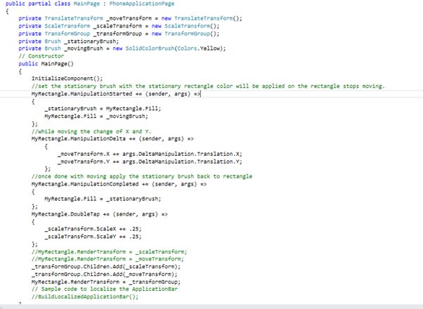 4. Now the Manipulation property of the rectangle that happens when some kind of event happens. The following are various types of Manipulation events:
