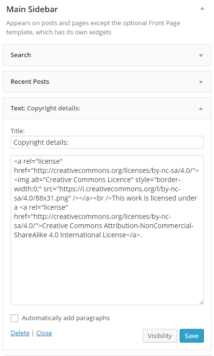 Adding license to WordPress blog