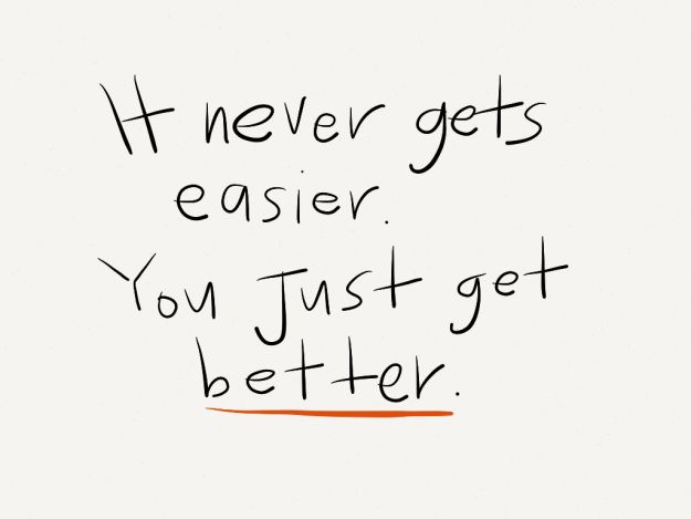 You should never think things are getting easier. It is you who have evolved.