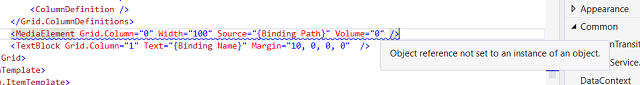 Well not actually, have a look at the preceding. The Source property is bound to the Binding property, not to a resource. That means that although the chances are that the data will be null. if we bind it successfully the source won't be null and the application will be built. Have a look, the XAML is still complaining, but in template-mode it doesn't matter! Just go ahead.