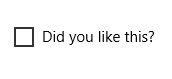 A CheckBox can be used where you want to get a value for a single item, or for a list of items. For example, a todo list can have checkboxes in it. You have also used it on a website when you login and you check the Remember me button. To create a CheckBox, you can use the following markup: