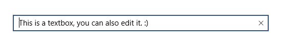 - <TextBox Height="25" Width="500" Text="This is a textbox, you can also edit it. :)"></TextBox>