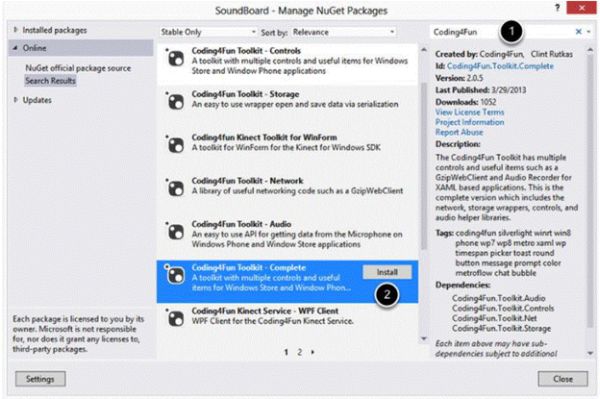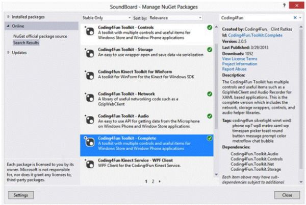 With a fresh install of Visual Studio 12, we need to update NuGet to get some of the new packages like the Coding4Fun toolkit. It's a really easy procedure for the installation and you can easily get this by a few mouse clicks.