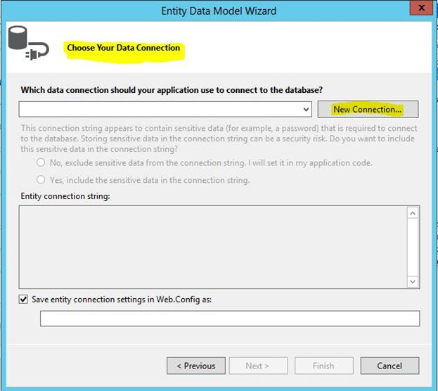 On clicking Next, you will get a option Choose Your Data Connection, from here just select a connection string if you already have one or else you can go with New Connection.
