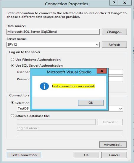 Microsoft has provided a beautiful option to check your connection, down the pop box. Just click on Test Connection, if everything until now will be smooth and clear then you will get a pop-up box saying- "Test connection Succeeded" as shown below.