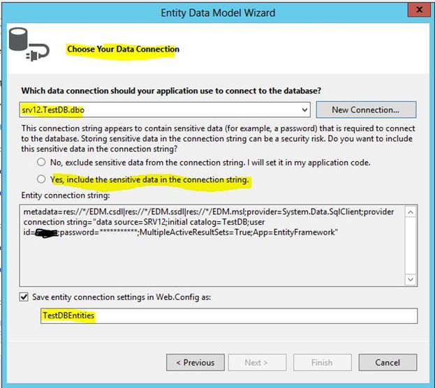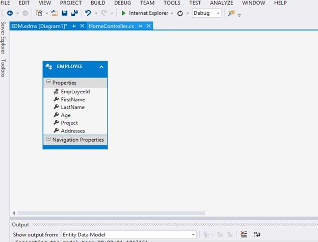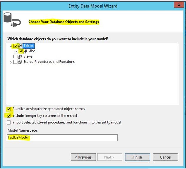 In model Namespace just leave it as it is or change it depending on you. In my case its TestDBModel, click Finish.