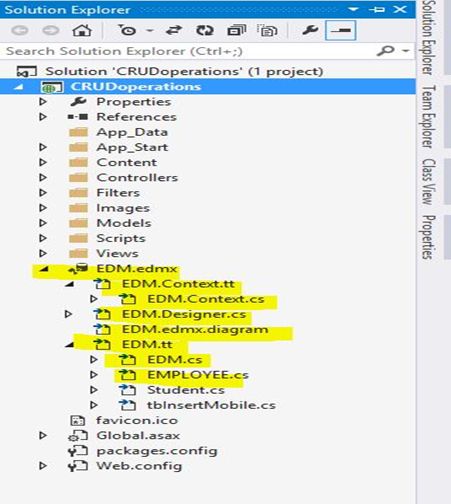You can see all these EDM files in the Solution Explorer, having all the required fields, pages and reference files of all your available tables with ".cs extension".