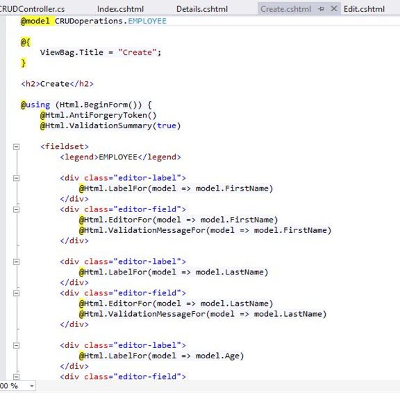 This article is all about ASP.NET MVC CRUD operations using Entity Data Model (DB First Approach). This will explain it in baby steps using images. One more interesting fact about this article is, you are not going to write even a single line of code.