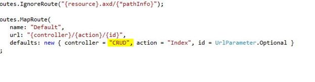 In my case I changed it to Controller = “CRUD”.