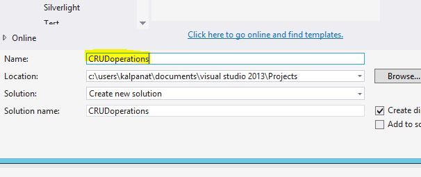 In this window simply fill in the project name depending on you; in my case it is "CRUDoperation" and then click on OK.