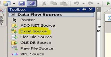 (Again go to the toolbox option at the left hand side and click on Data Flow Source.)