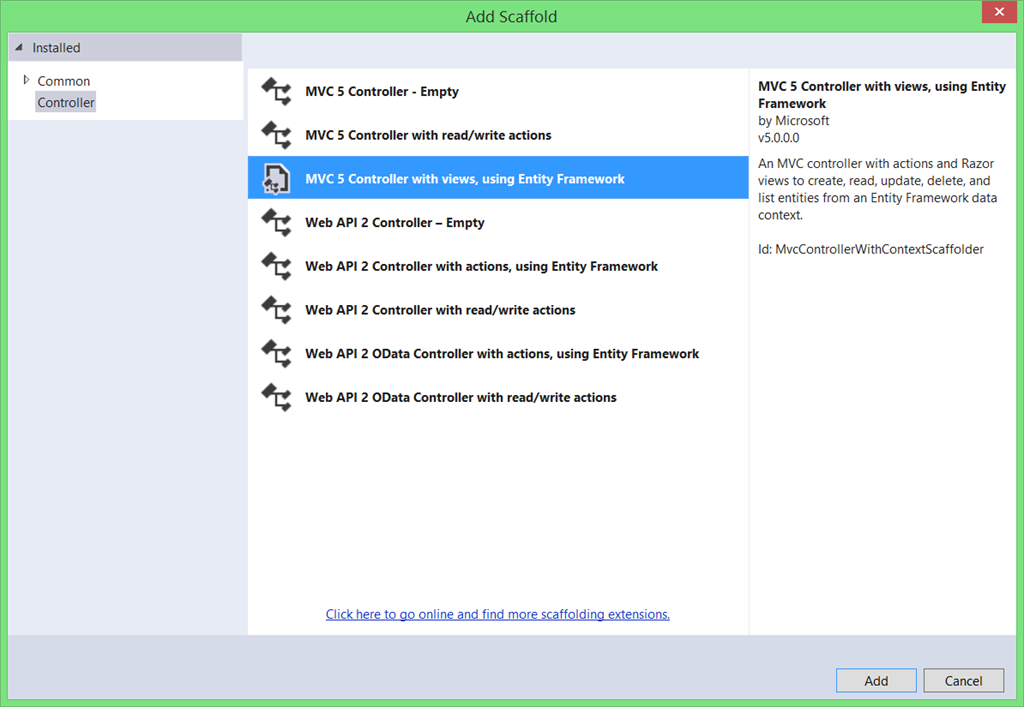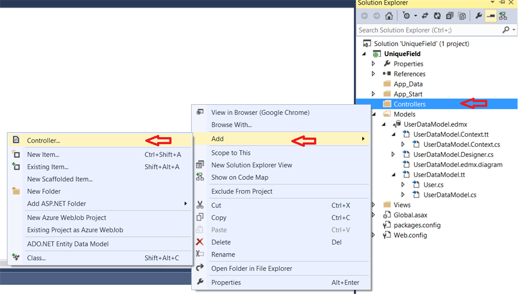 The next step is to add an ADO.Net Entity Data Model in the Models folder.