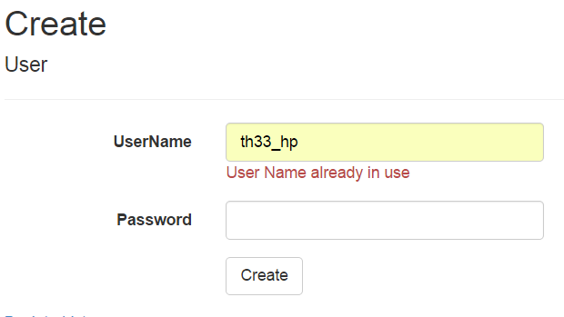 But if we specify a different username that has not been taken yet, it will not provide us the validation error message.