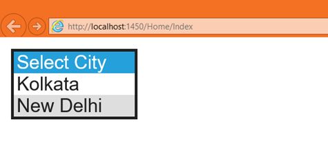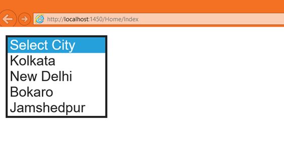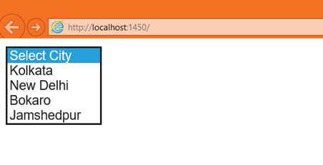 But when we run the application, notice that no City is selected as a default and let's say our requirement is such that we want New Delhi to be selected by default.