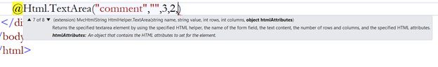 @Html.TextArea("comment","",3,2,null)