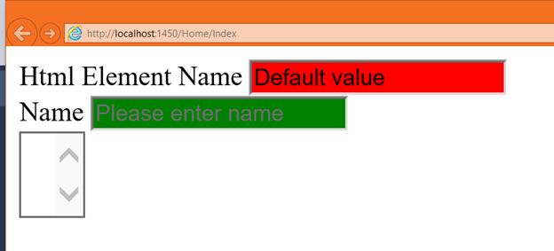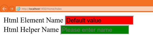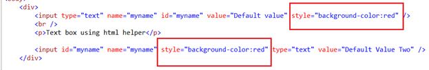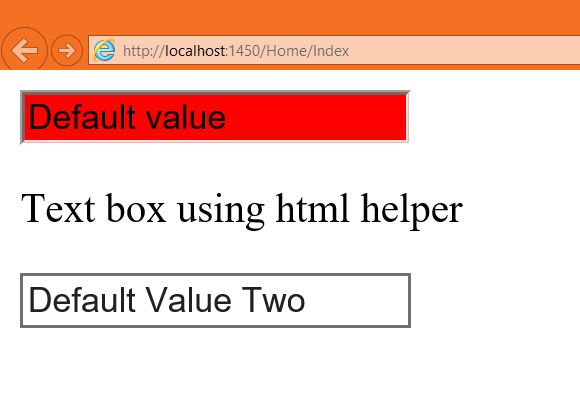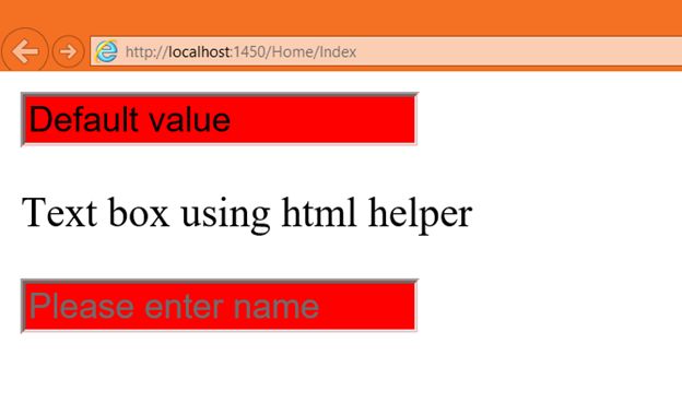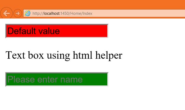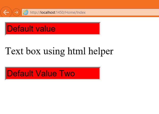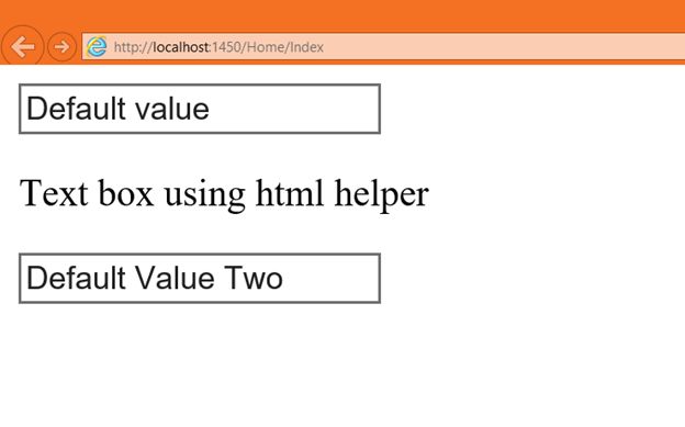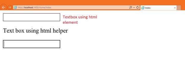In the output we got two TextBox controls, one is rendered using a HTML element and another is rendered using a HTML helper.