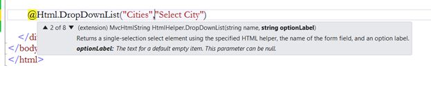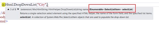 Along with the DropDownList HTML helper there is another HTML helper DropDownListFor. This DropDownListFor HTML helper can be used when we create strongly typed views.