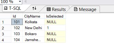 In our current table tblCity we will add another column IsSelected of type bit. So, either 1 or 0 or null.