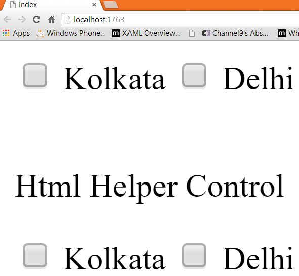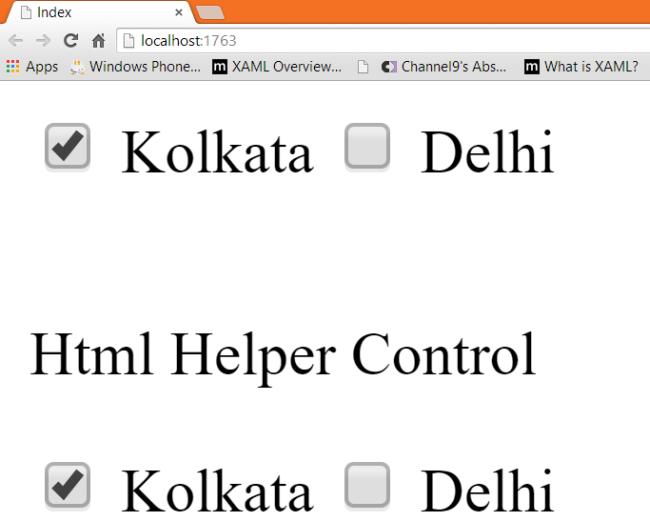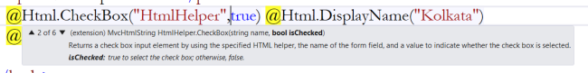 - @Html.CheckBox("HtmlHelper") @Html.DisplayName("Kolkata")